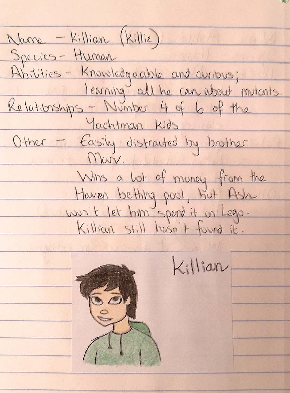 Other- Easily distracted by brother Marv. Wins a lot of money from the Haven betting pool, but Ash won't let him spend it on Lego. Killian still hasn't found it.