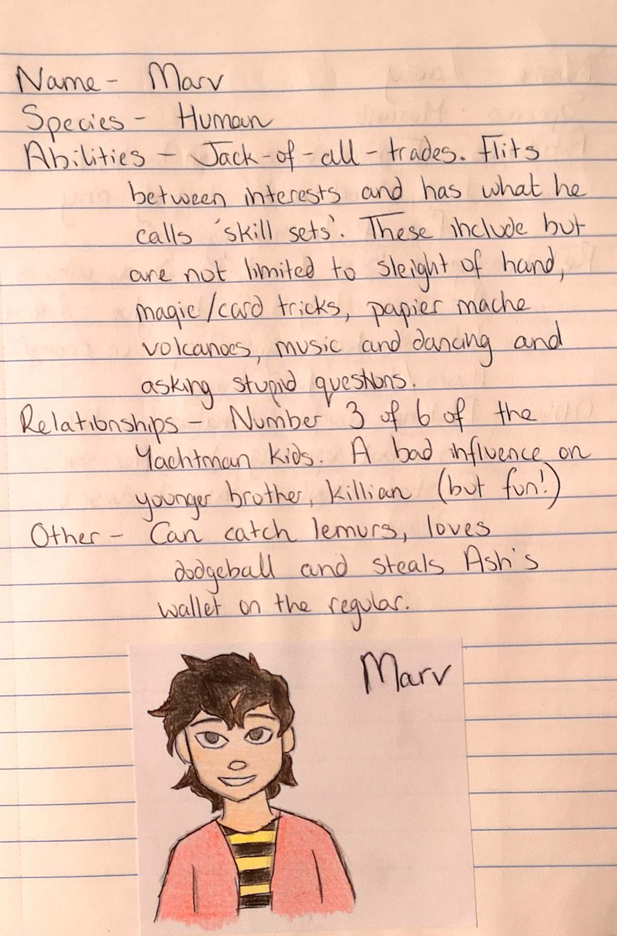 Abilities- Jack-of-all-trades. Flits between interests and has what he calls 'skill sets'. These include but are not limited to sleight of hand, magic/card tricks, papier mache volcanoes, music and dancing and asking stupid questions.