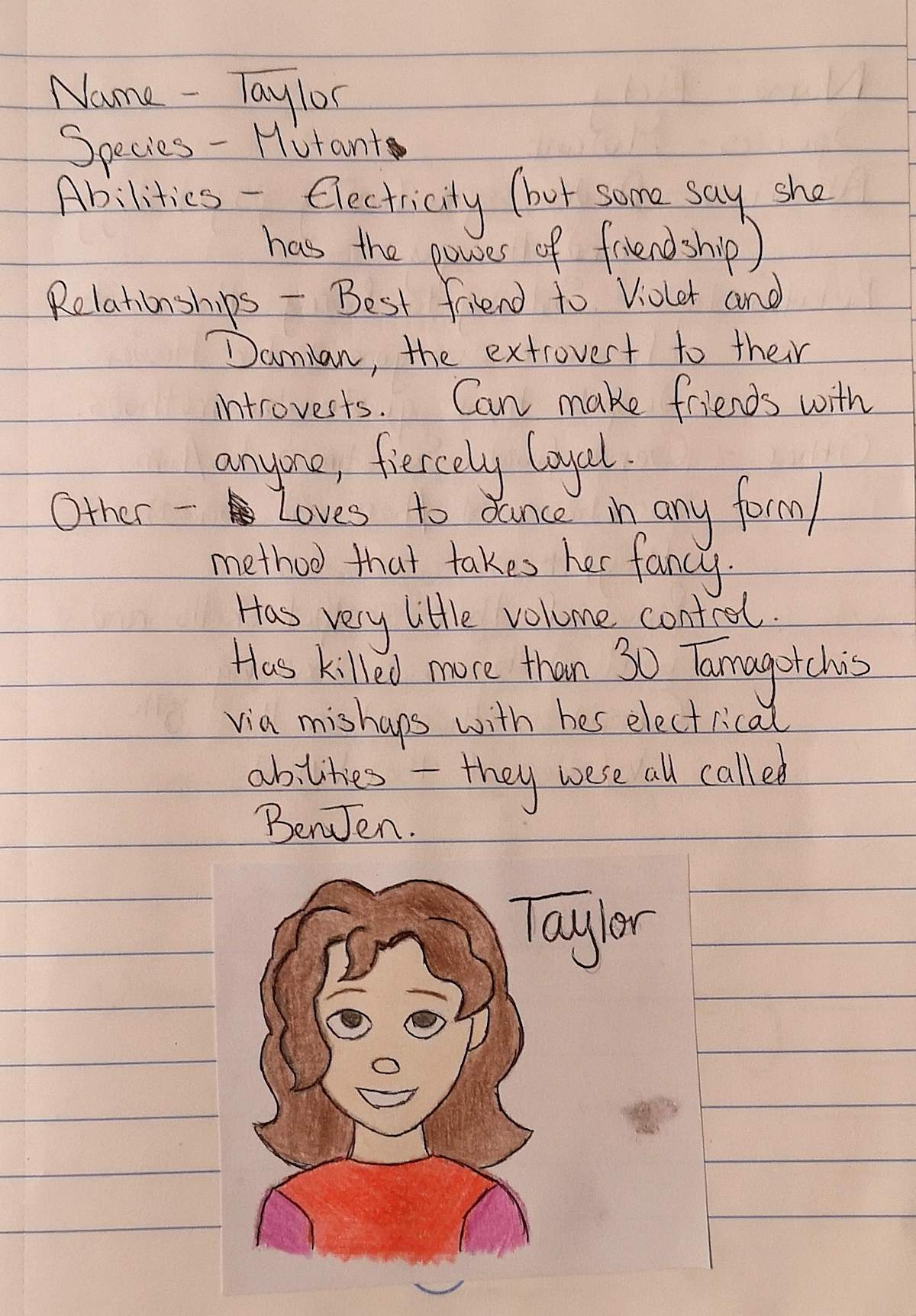 Relationships- Best friend to Violet and Damian, the extrovert to their introverts. Can make friends with anyone, fiercely loyal.
